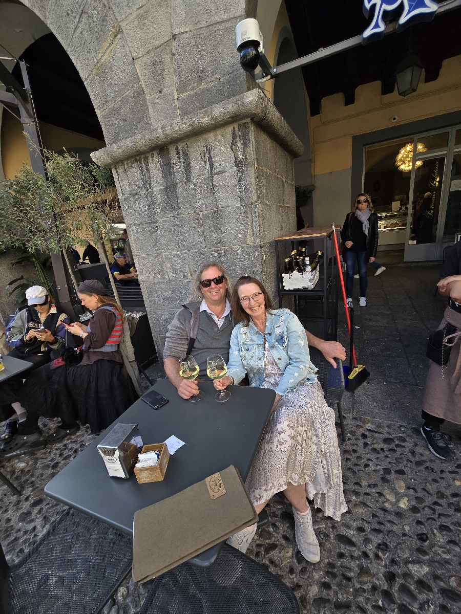 We left Venice in a water taxi, train to Milan then a train to Como. A little ready and then pizza. The next day was Cynthia's birthaday. For this day we took the ferry to Varenna, walked the streets and drank some wine then sailed the Belagio where we walked the streets, bought some silk and drank some more wine while we watched the sun go down over the mountains on the other side of the lake. After that we took the last slow boat home to Como.