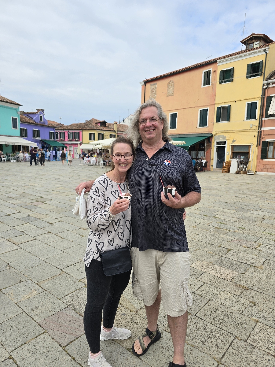 15 years ago we got married in Telluride, Colorado. Today we will be celebrating our anniversary on the islands of Murano, Burano and Venice. Murano is known for it's artistic glass making, Burano is a small fishing village with very colorful buildings. Venice is, well, Venice.